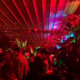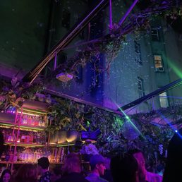 I've actually been here a few times for private birthday parties. Once downstairs in the back room and another time upstairs in the patio. Both times I had a great time. Loved the vibes and different atmosphere. The patio is super nice, wide open spaces with ample seating and attentive bar and staff. It gets kind of loud there, so don't expect classy intimidate conversations. This is the type of place you get loud and drunk with a large group of folks. The downstairs has a private area where it's a giant room with a bar in the back. No seating though, so you're standing. The service here isn't as good as the bar is pretty small and I don't think there's wait staff or anyone to serve you, so you have to order at the bar and the lines and wait get pretty long because of it. Based on my conversations with the hosts, the drink spend minimum is pretty high. We packed both spots up to the brim with a bunch of thirsty socializers and I think both times we barely missed the target. I guess that's just part of the price you pay to booking a private venue in NYC. I would definitely recommend this place though overall and have your guests buy cocktails only